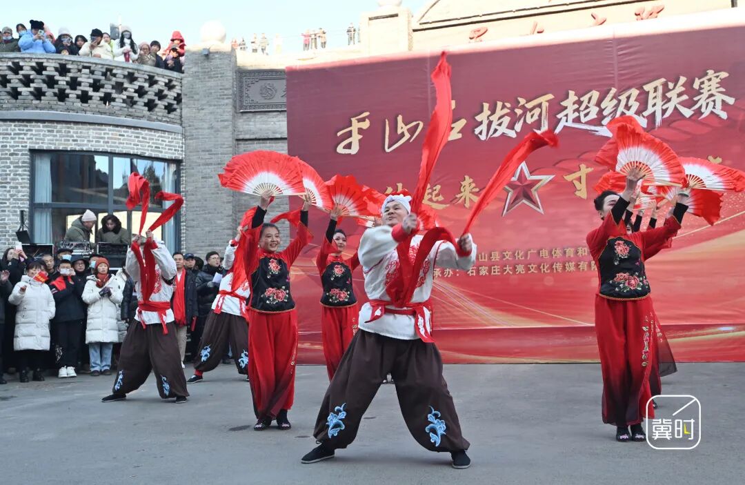 冀时新闻报道(河北台 杜岩卿 通讯员 焦洛 王丽华)1月2日,石家庄市平山县岗南镇星火大院广场上人潮涌动,掌声、加油声与歌声交织成一片欢乐的海洋,“平山红”拔河超级联赛小组赛首场比拼在这里开赛。
