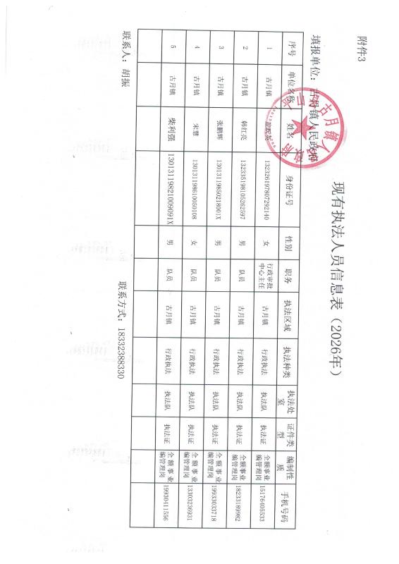 古月镇现有行政执行人员名单