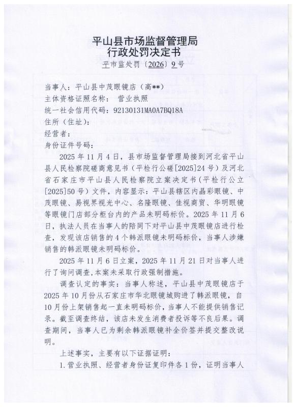 平市监处罚〔2026〕 9 号