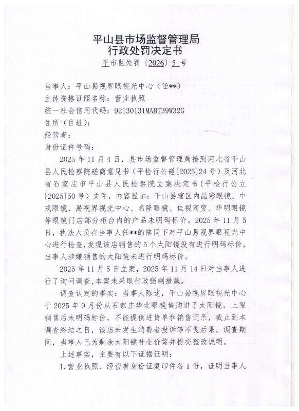 平市监处罚〔2026〕 5 号