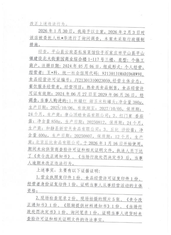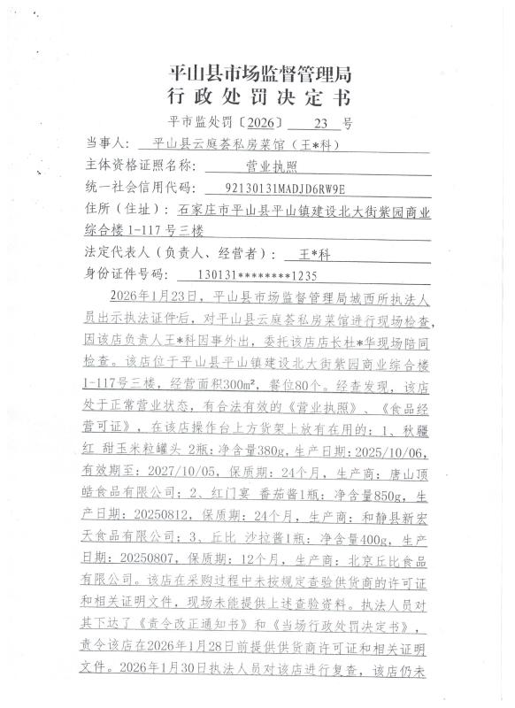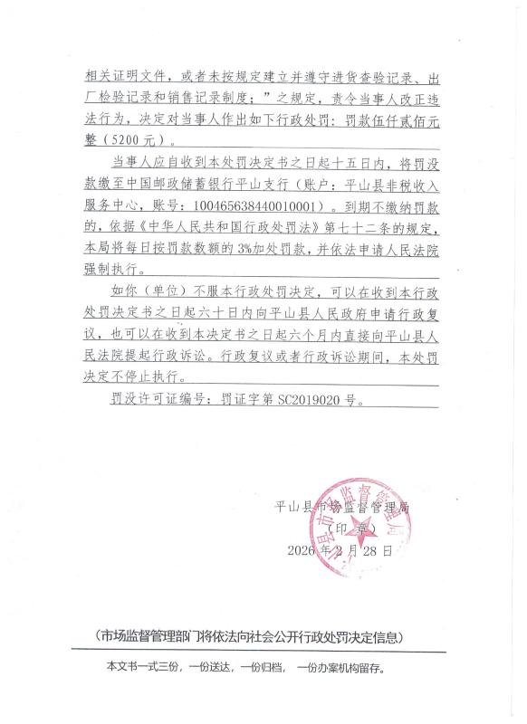 平山县市场监督管理局行政处罚决定书 平市监处罚【2026】23号