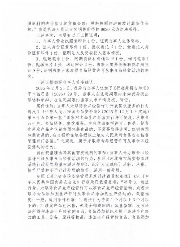平市监处罚〔2026〕29 号