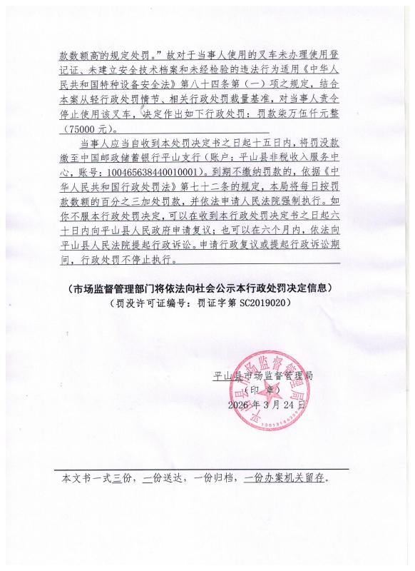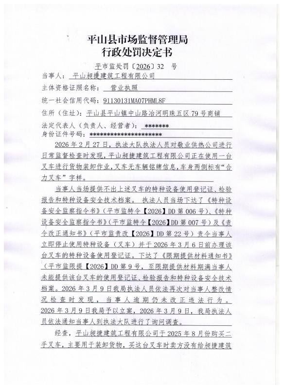 平山县市场监督管理局行政处罚决定书平市监处罚[2026]32号