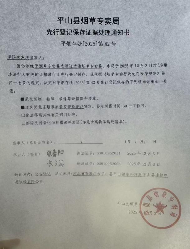 平山县烟草专卖局关于寻找当事人的公告(42号)