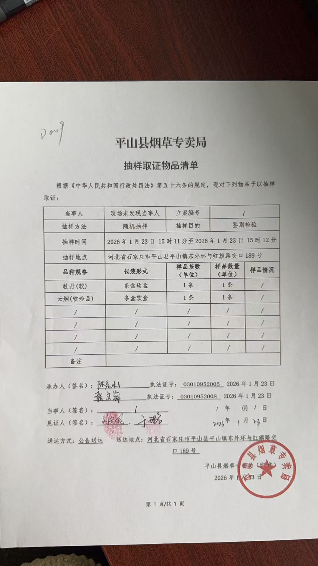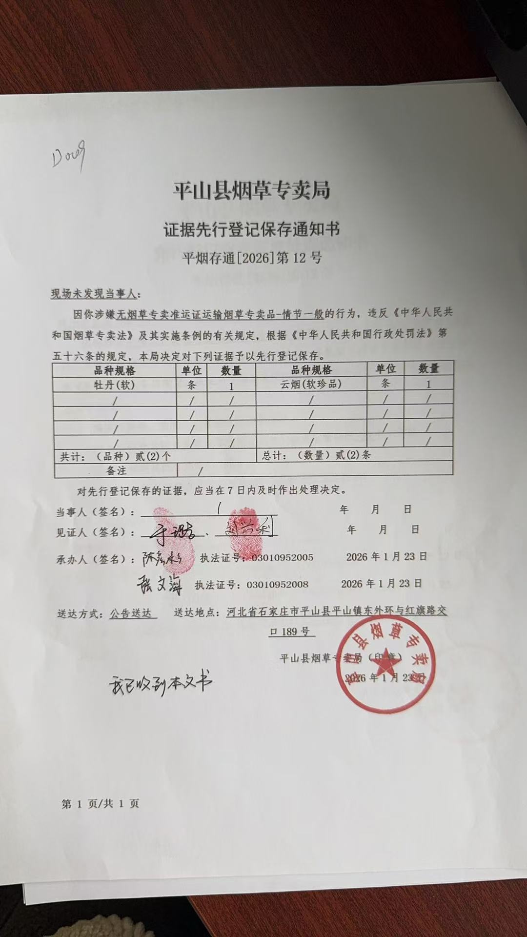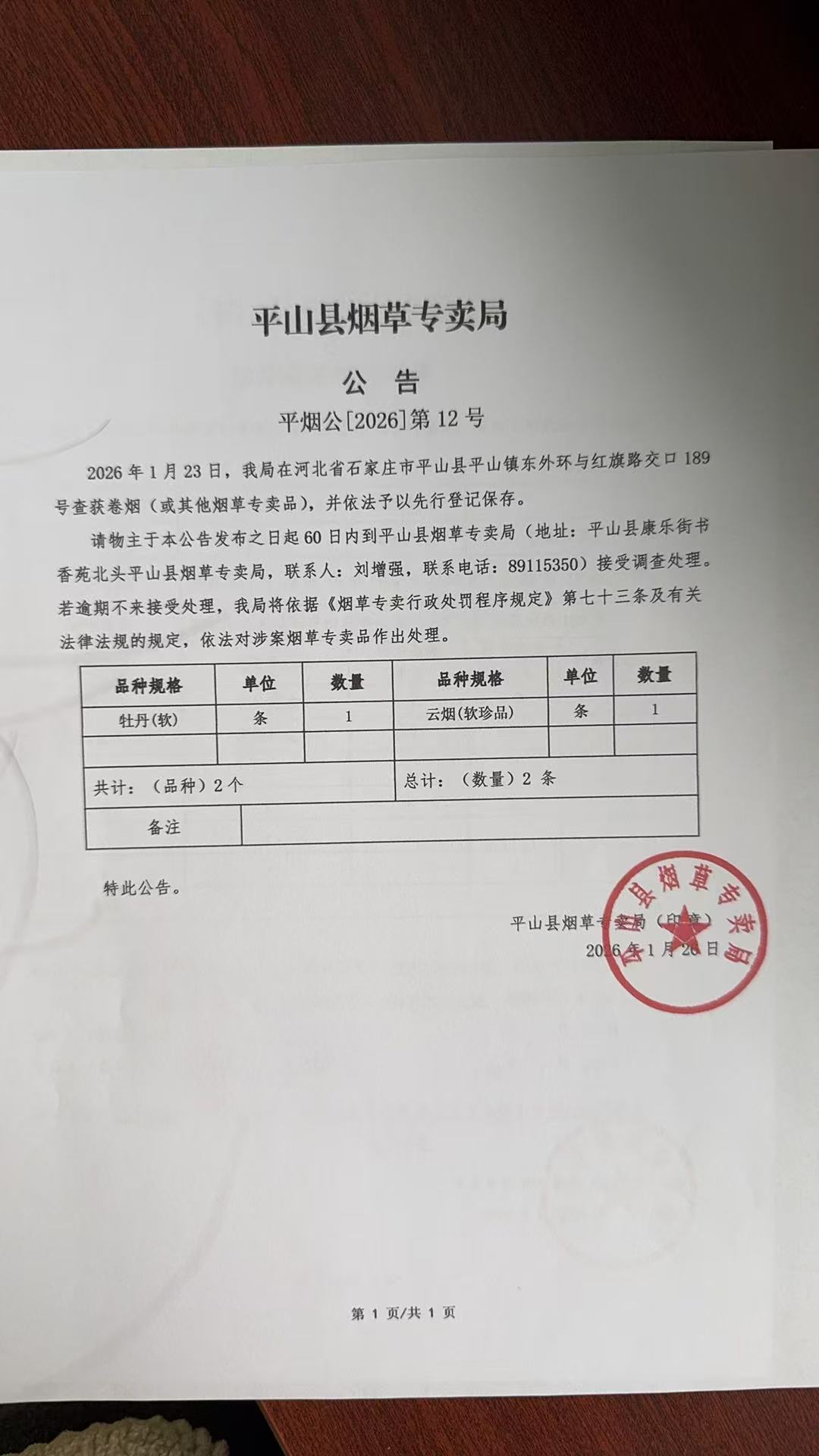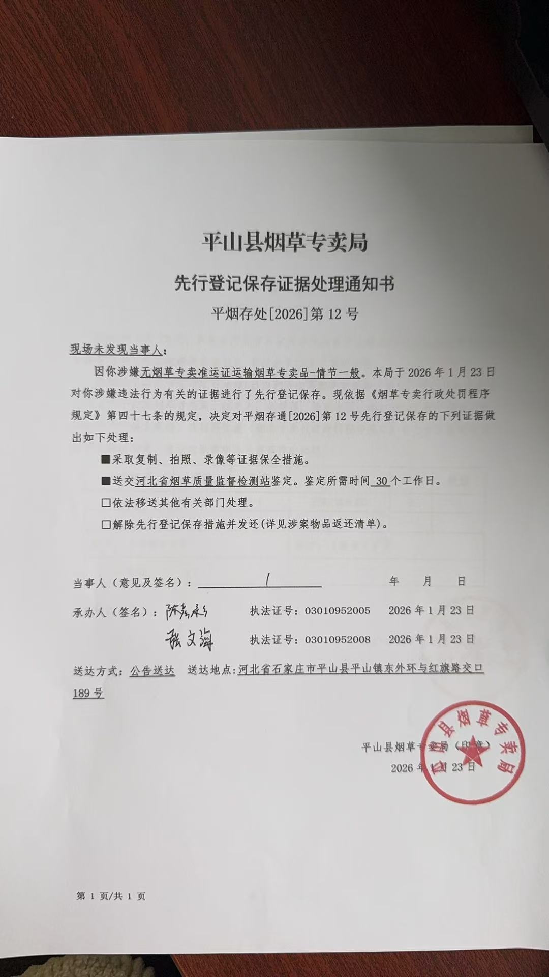 平山县烟草专卖局关于寻找当事人的公告(第12号)