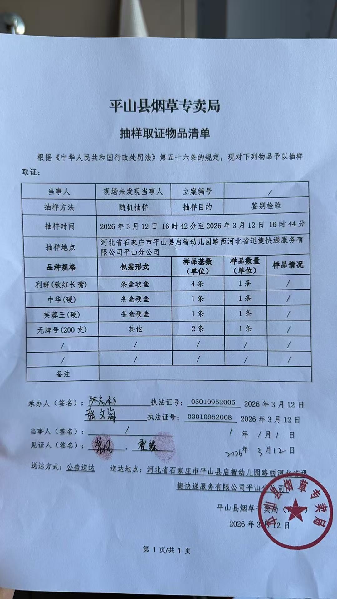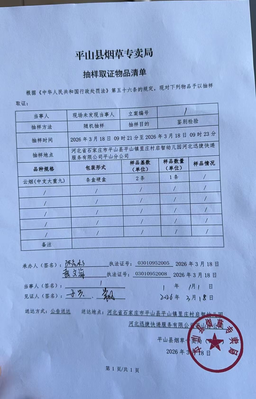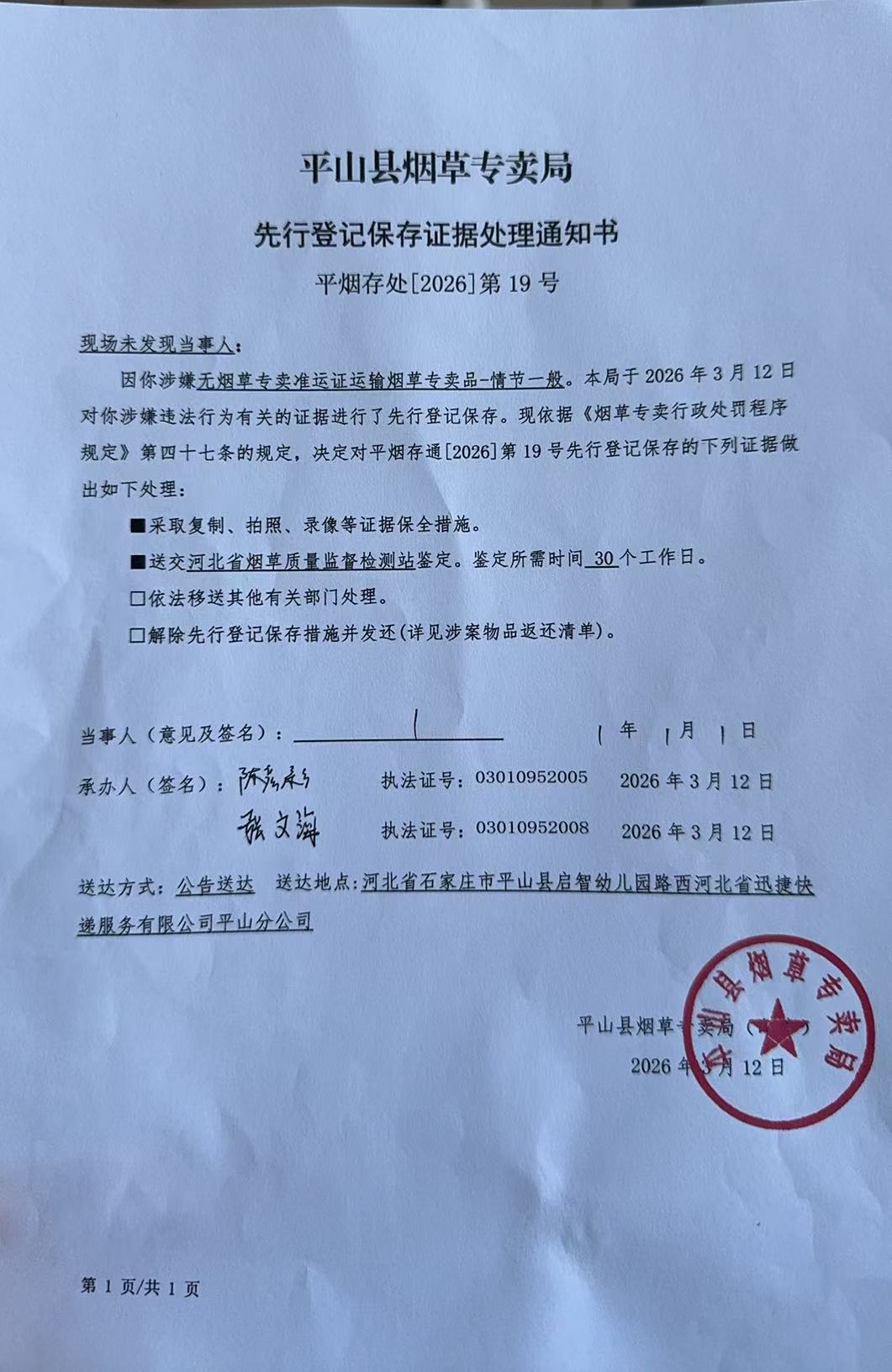 平山县烟草专卖局关于寻找当事人的公告(19号、21号)