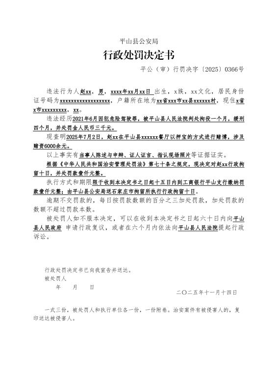 平公(审)行罚决字〔2025〕0366号行政处罚决定书