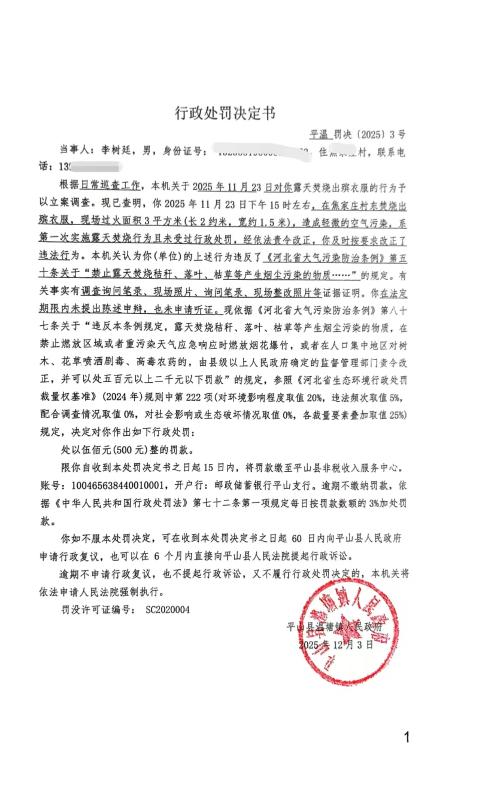 李树廷露天焚烧造成空气污染案