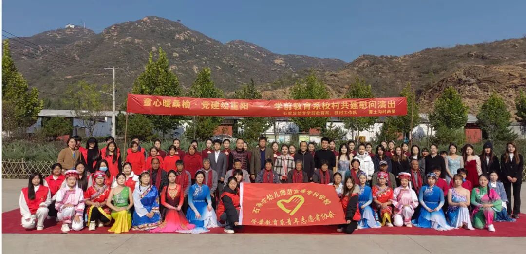 三是石家庄幼专学前教育系开展文艺演出。学前教育系师生为村民奉献了一场精彩的文艺演出,节目包括演唱、舞蹈和器乐演奏等;村舞蹈队也表演了四个舞蹈节目。