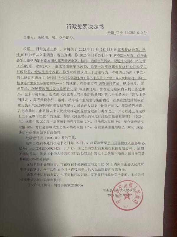 杨树明露天焚烧