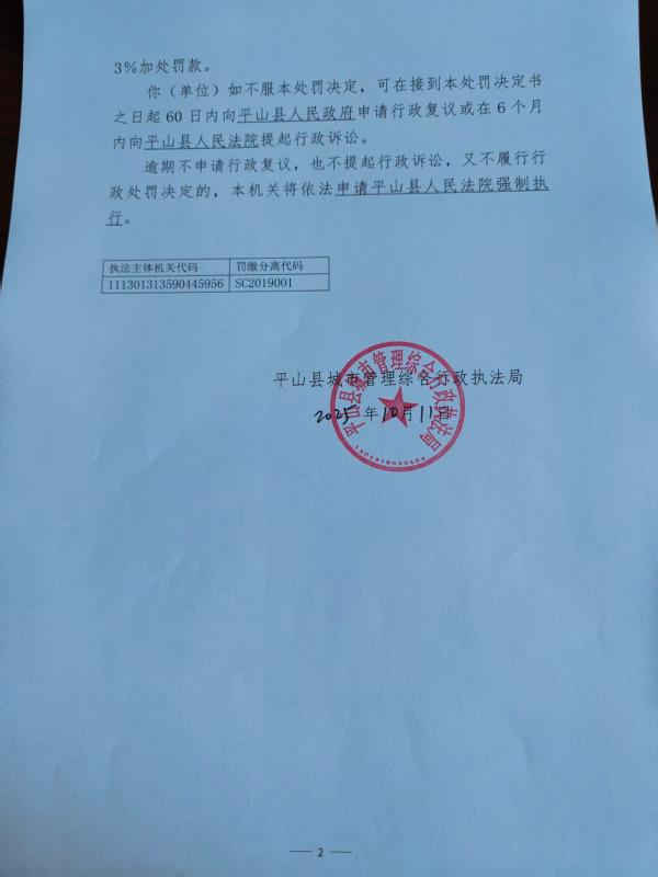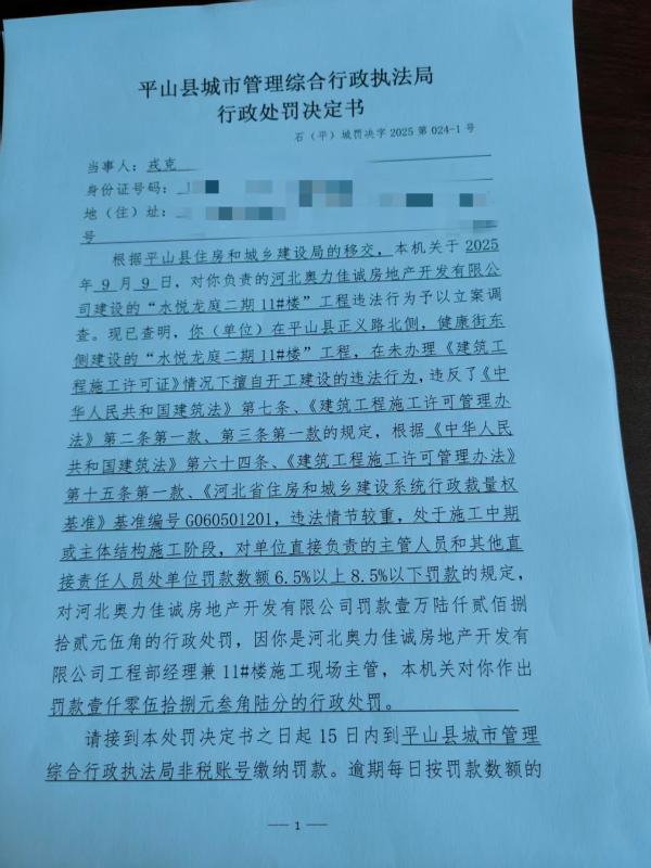 平山县城管局行政处罚决定书罚字【2025】第024-1号