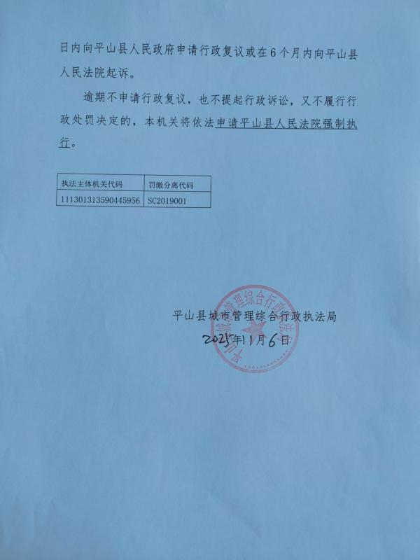 平山县城管局行政处罚决定书罚字【2025】第025-1号