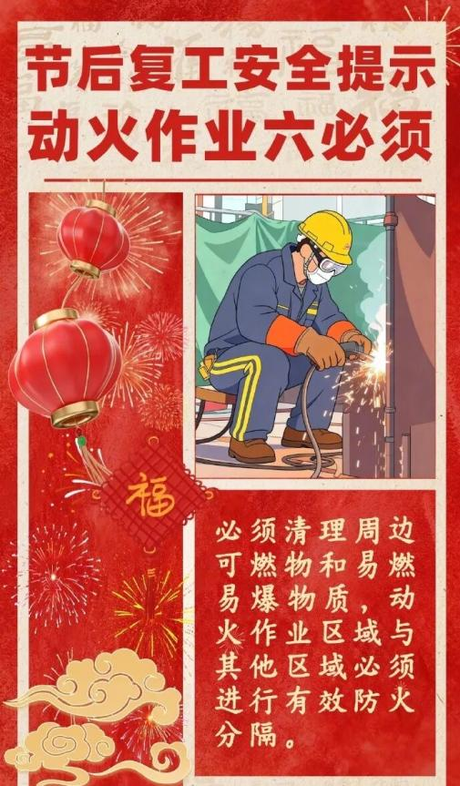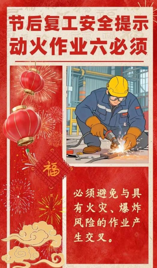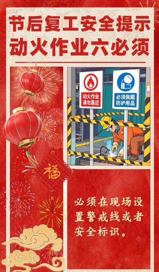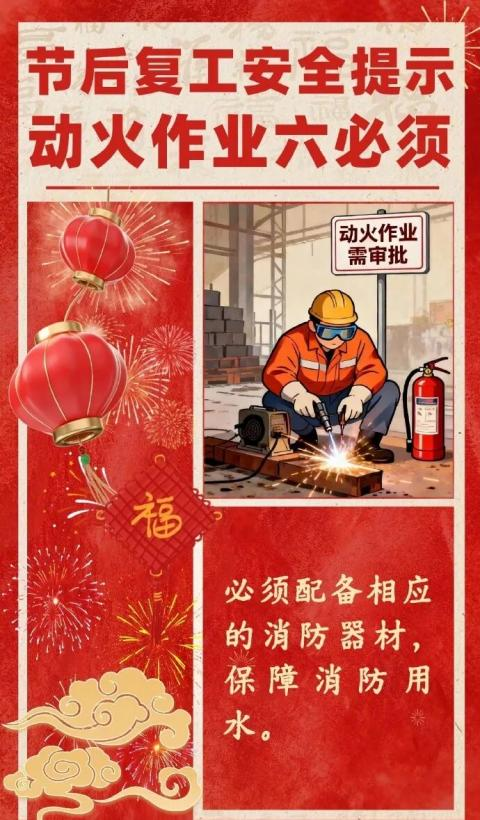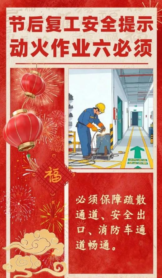 春节过后,各类企业陆续复工复产,为切实做好企业消防安全工作,确保全县消防安全形势稳定,现就做好复工复产期间消防安全工作,县消防安全委员会办公室提示如下: